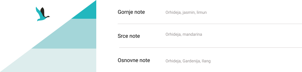 Orchidea Blu je miris sa cvetnom olfaktornom notom. Miris je veoma intenzivan, preneće vaš um među boje i mirise egzotičnog pejzaža. Note mandarine i ilanga čine ovu notu jedinstvenom i prepoznatljivom.